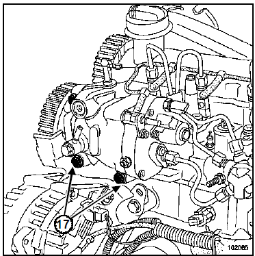 - Desserrer les deux vis de fixation (14) du support arrière de pompe haute pression sur le carter cylindres.