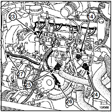 | IMPORTANT Avant toute intervention sur le circuit d'injection, vérifier à l'aide de l'outil de diagnostic :