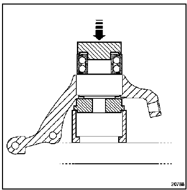 - la bague extérieure du roulement du porte-fusée en prenant appui avec un tube de diamètre identique à celui de la bague extérieure.