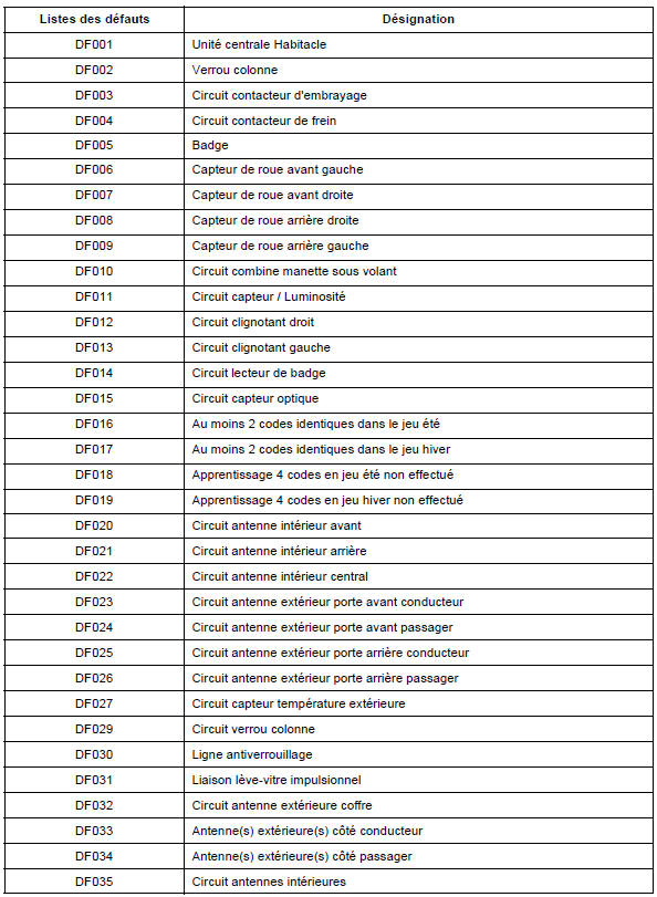 UNITE CENTRALE HABITACLE1.DEF : anomalie électronique
