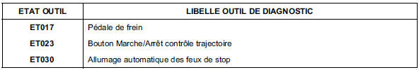 Revue technique automobile - Renault Scenic: Tableau récapitulatif des états et paramètres